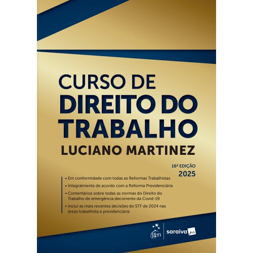 “A profundidade da obra, atualizada, aliada à sua didática tornam o Curso de Direito do Trabalho de Luciano Martinez um material ind ispensável a qualquer biblioteca. Em sua 16ª edição nos surpreende ainda mais. Boa leitura e reflexão.”