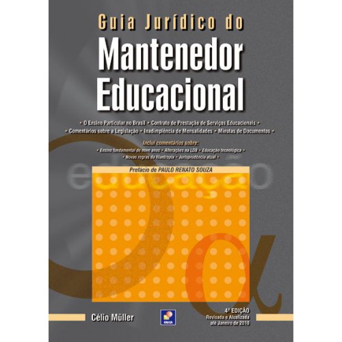 Esclarece as principais questões de natureza jurídica que envolvem uma instituição educacional. Oferece um verdadeiro alicerce para o mantenedor no desempenho de sua função, desde a educação infantil até o nível superior. Sua teoria é complementada p or exemplos práticos e o leitor terá condições de compreender e aplicar com maior tranquilidade a base legal que sustenta o ensino particular. O estudo detalhado da Lei de Diretrizes e Bases da Educação, Estatuto da Criança e do Adolescente, Constitu ição Federal, Códigos Civil e do Consumidor, aspectos polêmicos do contrato educacional, formalização da matrícula, mensalidades escolares e todo o tratamento destinado aos inadimplentes é complementado pelos aspectos fiscais e trabalhistas aplicávei s à empresa. A quarta edição foi revisada e atualizada. Traz comentários sobre mudanças recentes da legislação, como o ensino fundamental de nove anos, as alterações na LDB, a educação tecnológica, as novas regras da filantropia e novas decisões de n ossos tribunais sobre matéria educacional.