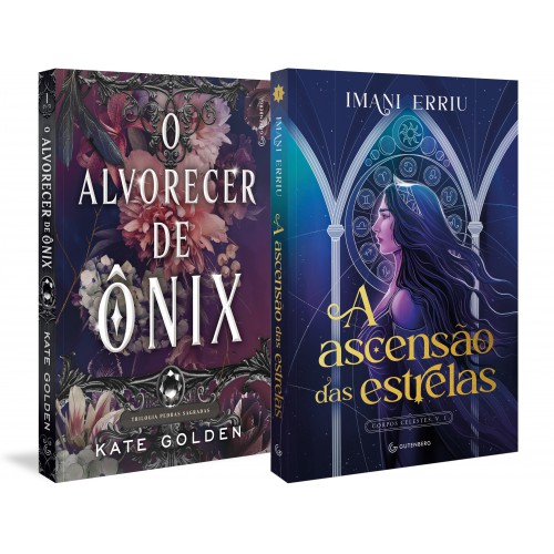 O alvorecer de ÔnixDespertar a luz que existe dentro de si pode ser sua única saída.Arwen Valondale nunca imaginou que seria a corajosa, oferecendo sua vida para salvar a de seu irmão. Agora, ela foi feita prisioneira pelo reino mais perigoso do cont inente e forçada a usar suas raras habilidades mágicas para curar os soldados do cruel rei de Ônix.Arwen sabe que não pode enfrentar sozinha a sombria floresta que cerca o castelo, o que significa que sua única chance de liberdade pode ser trabalhar com outro prisioneiro. Infelizmente, ele é tão irritante quanto astuto - e parece sentir um prazer perverso em explorar os medos mais profundos da jovem.Mas no Reino de Ônix, confiança é um luxo que ela não pode se permitir.Para sair do território in imigo, Arwen terá que lidar com a traiçoeira nobreza, magia sombria e feras mortais. No entanto, um poder inexplorado dorme dentro dela, esperando para despertar. Se conseguir dominá-lo, talvez consiga escapar com vida - e, quem sabe, com o coração i ntacto.O Alvorecer de Ônix é o primeiro volume da aclamada trilogia Pedras Sagradas, escrita por Kate Golden.A ascensão das estrelasEm um mundo governado por deuses cruéis conhecidos como Estrelas, Elara é amaldiçoada por uma profecia: ela se apaixon ará por uma Estrela, e isso matará ambos. Quando Ariete, a Estrela da Ira, desce para destruir seu reino, Elara foge para Helios, o Reino da Luz, onde é treinada por Lorenzo, o príncipe inimigo, para se tornar uma arma contra as Estrelas. Mas forças sombrias e uma atração irresistível entre eles ameaçam mudar o destino de todos.