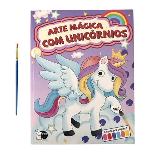 Os unicórnios são seres muito especiais, mas aqui falta algo... O que será? Isso mesmo, cores! Vamos pintar todos os desenhos? Com este livro, os pequenos vão poder colorir, pintar e desenhar muitos elementos fantásticos do mundo dos unicórnios. O melhor de tudo é que a tinta já vem em uma paleta na parte superior de cada página, não é demais? É só molhar um pouquinho o pincel na água e passá-lo por cima da tinta no papel e colorir para a mágica acontecer. Então, mãos à obra!