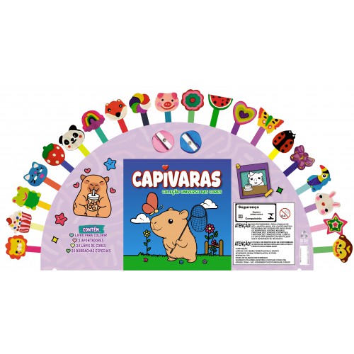 Este kit encantador traz um livro de 48 páginas repleto de desenhos das simpáticas capivaras e seus amigos, prontos para ganhar cores vibrantes. Com 20 lápis coloridos, 2 apontadores e 20 borrachas divertidas, os pequenos artistas vão se divertir e s oltar a criatividade, transformando cada página em uma verdadeira obra de arte. Vamos colorir o mundo das capivaras e seus amigos?