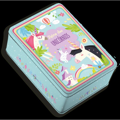 Um livro com histórias e contos originais de unicórnios. Inclui mais de 30 adesivos, um quebra-cabeça dupla-face com 36 peças e 4 lápis de cor. Tudo isso em uma linda lata. Presente inesquecível. A partir de 4 anos.