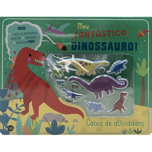 Esta caixa de atividades dinossaurásticas está recheada com o divertido mundo dos dinossauros! Aqui dentro há 4 livros com enigmas, jogos e atividades para desenhar e colorir, além de mais de 75 adesivos para as atividades e 10 lindos adesivos puff p ara alegrar o seu dia!