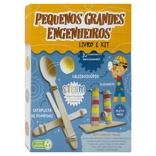 Aprenda a construir 10 projetos de engenharia épicos! combine os itens incluídos com coisas em casa para criar uma catapulta, lançador de pompons e até mesmo um caleidoscópio! Os pequenos engenheiros vão adorar este incrível kit.