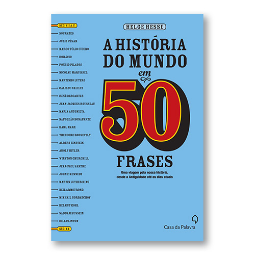 "Há algumas frases conhecidíssimas que dizemos e mal podemos imaginar a origem e a importância delas na história do mundo. “Só sei que nada sei”, “Carpe diem”, “Os fins justificam os meios”, “Penso, logo existo”, “Tempo é dinheiro”, “Tenho um sonho” e muitas outras foram ditas em momentos muito importantes por pessoas que mudaram a história de seus países. Todos nós ouvimos, usamos e lemos algumas destas frases mas não sabemos o seu contexto histórico. De forma bem humorada e sucinta este livro nos leva para um passeio na história: desde a Antiguidade, passando pelo Império Romano e pelo Renascimento até a Guerra Fria, a partir de cinqüenta frases célebres distribuídas ao longo de dois mil e seiscentos anos. Assim, o escritor Helge Hesse il umina o Império Romano com os dados que César lançou ou a Guerra Fria com o discurso berlinense de Kennedy, por exemplo. Cada um destes aforismos representa uma época da história universal que o leitor pode visitar em cinqüenta instrutivos capítulos. "