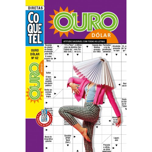 Um clássico moderno: o passatempo que combina desafio, diversão e saúde mental!Nível médio128 páginasDiversidade de passatempos: diretas, caça-palavras, caça-resposta, criptocruzadas, criptogramas, dominox, jogo dos erros, numerox, sudoku, torto, cru zadox, duplex, problema de lógica e muito mais.Ideal para adultos que buscam momentos de relaxamento com foco, concentração e estimulação cognitiva leve.O livro  Palavras-Cruzadas Diretas Ouro Dólar Coquetel  reúne o melhor dos passatempos cl ássicos em uma edição moderna e envolvente, perfeita para quem deseja exercitar o cérebro com leveza e prazer. Com 128 páginas e nível médio de dificuldade, esta coletânea inclui desafios variados como Palavras Diretas, Caça-palavras, Criptograma, Cr iptocruzada, Sudoku, Cruzadox, Dominox, Jogo dos Erros, Problemas de Lógica, Numerox e outros formatos que estimulam diferentes áreas do raciocínio. Ideal para adultos que valorizam o tempo offline, querem manter a mente ativa e buscam uma alternativ a saudável à rotina digital. Com a curadoria editorial da Coquetel, sinônimo de tradição e qualidade, esta edição é uma ótima escolha para leitores que desejam relaxar com inteligência e diversão.