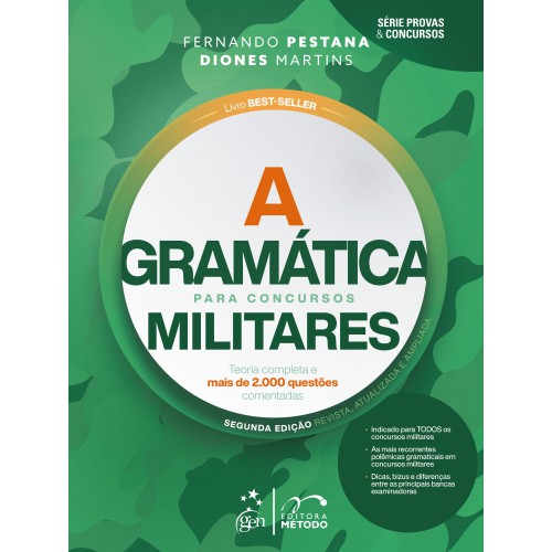 O objetivo de A Gramática para Concursos Militares é servir como a principal obra de referência a quem papira Português com sangue nos olhos, a fim de conquistar uma vaga em algum concurso militar, independentemente do alvo escolhido – Exército, Mari nha ou Aeronáutica – ou das bancas – EsSA, EsPCEx, EFOMM, CN, EN, RM2, EEAr, EAGS, EPCAr, AFA, entre outras. Este livro foi preparado para que você não tenha nem 0,1% de dúvida no dia da prova, pois tudo foi pensado com o intuito de fazer você gabari tar o exame. Para isso, a obra conta com uma teoria completa, focada e cheia de detalhes sobre as visões das bancas, além de dispor de mais de 2.000 questões comentadas para você simplesmente não ter desculpas em assimilar o conteúdo. Brasil!
