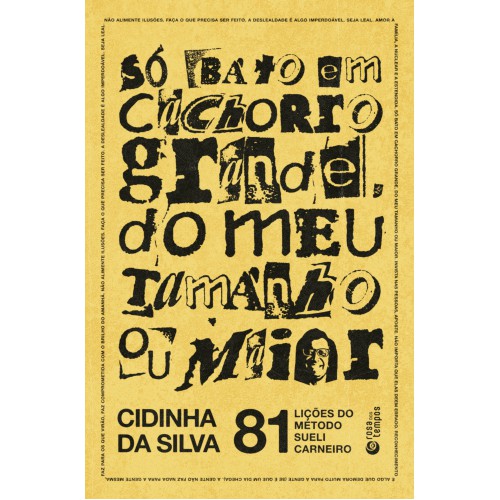 A premiada escritora Cidinha da Silva compartilha as lições de vida e formação política que aprendeu com Sueli Carneiro, uma das maiores intelectuais em atividade. Em Só bato em cachorro grande, do meu tamanho ou maior, Cidinha da Silva aprese nta 81 lições que testemunhou em mais de três décadas de convivência com Sueli Carneiro, filósofa reconhecida internacionalmente e fundadora do Geledés – Instituto da Mulher Negra. Cidinha da Silva sistematiza, em textos breves e afiados, o Método Su eli Carneiro, que reúne ensinamentos como “A fúria é banta” e “Não abra espaço com os cotovelos”, entre outras preciosidades ouvidas diretamente de sua mestra. Vencedora de diversos prêmios – incluindo os prestigiosos prêmios da Associação Paulista d os Críticos de Arte (APCA) e o da Biblioteca Nacional –, Cidinha da Silva nos lembra de que cada passo em direção à justiça social é fundamentado na força dos ancestrais e na potência dos encontros. Assim, mais do que um manual a ser seguido passo a passo, este livro expõe um olhar atento sobre a trajetória de uma mulher negra que luta por um mundo igualitário. Sueli Carneiro e Cidinha da Silva são duas grandes intelectuais e amigas de longa data. No centro de Só bato em cachorro grande, do meu tamanho ou maior há um amor, generoso e exigente, inspirado nos ensinamentos de Exu e Ogum, que não se encaixa em padrões e fortalece quem ama e enfrenta os conflitos com determinação. O texto de orelha é assinado por tatiana nascimento. O prefácio é de Wanderson Flor do Nascimento e o posfácio de Eduardo Oliveira. “Cidinha da Silva, além de ser uma mestra ao contar histórias, [...] é também uma aguerrida ativista literária negra.” – Geledés “Cidinha da Silva construiu uma trajetória na l iteratura focada nas tradições, conhecimentos e saberes de matriz africana.” – Estado de Minas “Na bibliografia de Silva, alguns aspectos sobressaem, como a presença da espiritualidade de matriz africana, a exaltação da cultura negra no Brasil e a ob servação atenta da desigualdade de raça e gênero.” – Folha de S. Paulo