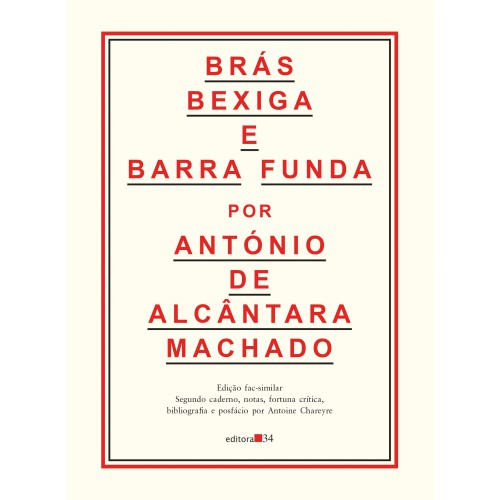 António de Alcântara Machado (1901-1935), herdeiro de uma família tradicional de São Paulo, teve uma passagem fulgurante pelo meio intelectual brasileiro. Mesmo com a morte precoce aos 33 anos, foi jornalista, cronista, crítico literário e teatral, h istoriador, fundador dos periódicos Terra Roxa, Revista de Antropofagia e Revista Nova, deputado federal eleito em 1934 e autor de três livros que são marcos do nosso modernismo: Pathé-Baby (1926), Brás, Bexiga e Barra Funda (1927) e Laranja da China (1928). Brás, Bexiga e Barra Funda, cujo título remete a três bairros operários da capital paulista, com forte presença de imigrantes italianos, traz onze contos escritos em uma linguagem veloz e precisa, incluindo clássicos como “Gaetaninho”, “Carm ela” e “Corinthians (2) vs. Palestra (1)”, além de um prefácio intitulado “Artigo de fundo”. Este texto, espécie de manifesto do autor, aponta as diretrizes de uma nova prosa, acompanhando as revoluções modernistas que haviam ocorrido nas artes plást icas, na música e na poesia. A presente edição, fac-similar (mas que respeita a ortografia atual), foi organizada pelo editor e crítico francês Antoine Chareyre, também autor do posfácio. O volume inclui notas explicativas aos contos, cinco textos ad icionais de Alcântara Machado, bibliografia e uma fortuna crítica que apresenta um verdadeiro achado do organizador: uma resenha de Carlos Drummond de Andrade, inédita em livro, de 1927, assinada com o pseudônimo de Antônio Crispim.