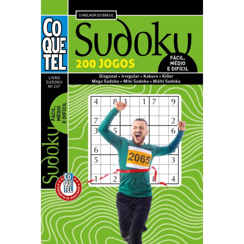 Desafie sua mente e divirta-se com o Livro Coquetel Sudoku, que traz 200 jogos de Sudoku, incluindo diagonal, irregular, Kakuro, Killer, Mega Sudoku, Mini Sudoku e Múltiplo Sudoku. Com níveis de dificuldade que vão do fácil ao difícil, este livro é p erfeito para quem quer testar suas habilidades de lógica e melhorar a concentração. Benefícios para a saúde mental: Aumenta o raciocínio lógico: cada Sudoku desafia sua capacidade de pensar criticamente e resolver problemas complexos. Estimula a memó ria e a atenção: a resolução de Sudoku exige foco e memória, ajudando a manter a mente ativa e afiada. Reduz o estresse: a imersão no Sudoku oferece uma pausa relaxante da rotina, promovendo bem-estar e alívio do estresse diário. Com a garantia de qu alidade Coquetel, este livro é ideal para quem busca um passatempo divertido e desafiador, estimulando o cérebro de forma saudável. Seja você um iniciante ou um especialista, encontrará jogos para se divertir e exercitar a mente!