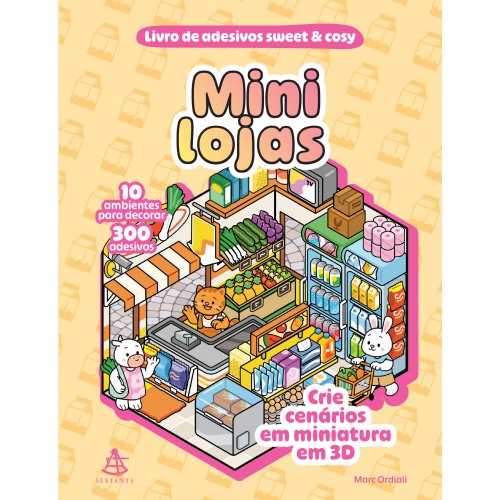 Crie cenários em miniatura em 3D. Entre em um mundo de charme em miniatura com Mini lojas – Livro de adesivos sweet & cosy, que traz 10 lojinhas aconchegantes e encantadoras para você decorar. Ilustrado por Marc Ordiali, este livro convida você a usar miniadesivos para montar 10 lojinhas completas, desde uma minilivraria, uma miniqueijaria até uma miniconfeitaria fofíssima. Todas as lojinhas são repletas de detalhes e bichinhos adoráveis. Se você ama papelaria kawaii, design de interiores e momentos criativos relaxantes, este é o refúgio offline perfeito. Em vez de criar os ambientes do zero, esta atividade propõe um processo guiado e relaxante: basta escolher qual lojinha você quer montar primeiro, observar o modelo e destacar os ades ivos correspondentes, colando-os no cenário para completar o espaço. É bem simples! Cada adesivo adiciona móveis, objetos decorativos, produtos e pequenos momentos dos bichinhos, dando vida a cada lojinha em miniatura. O resultado são cenários acolhe dores, acessíveis e profundamente satisfatórios. É a maneira perfeita de relaxar sem estresse: não é preciso dominar técnicas complexas, apenas aproveitar a experiência tranquila de colar adesivos cuidadosamente ilustrados sobre ambientes encantadore s. Dentro do livro, você encontrará: • 10 lojinhas em miniatura • 300 adesivos transparentes e reutilizáveis • Modelos que mostram a cena completa • Uma atividade sem estresse, perfeita para o fim do dia, viagens, tardes tranquilas ou momentos de rel axamento consciente • Um formato colecionável e ideal para presentear quem ama arte, decoração e estética aconchegante Cada uma das cenas representa um pequeno instante de conforto e calma. Mini lojas – Livro de adesivos sweet & cosy transforma o simples ato de colar adesivos em pequenos mundos de aconchego que cabem no bolso.