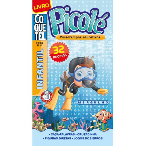 Reduza o tempo de tela com os passatempos Coquetel! Quer promover momentos de diversão longe das telas para os pequenos? Deixa com a gente!O livro Picolé — Passatempos educativos traz 32 páginas completamente coloridas e repletas de caça-palavra s, cruzadinhas, figuras diretas e jogos dos erros, pensados para crianças de 6 a 9 anos:Desenvolvimento cognitivo: atividades que reforçam memória de trabalho, reconhecimento de padrões e interpretação de texto, ampliando o vocabulário sem perceber. Coordenação motora fina: colorir, circular palavras e encontrar diferenças fortalecem o controle do lápis e a destreza manual, fundamentais para a escrita. Concentração e paciência: desafios graduais promovem persistência e disciplina, criando hábito s de foco em cada página. Aprendizado divertido: design vibrante e níveis de dificuldade ajustados fazem do estudo um jogo prazeroso. Portátil e inclusivo: perfeito para casa, escola ou viagens, mantém as crianças próximas ao papel e longe das telas! Invista em um entretenimento educativo de qualidade: adicione agora mesmo Picolé ao carrinho e transforme o tempo de tela dos pequenos em horas de passatempos lúdicos e educativos!