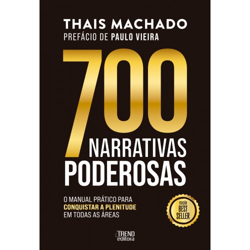 "700 Narrativas Poderosas: O Manual Prático para Conquistar a Plenitude em Todas as Áreas" é um guia de autoajuda da autora e master coach Thais Machado, com prefácio de Paulo Vieira. Se baseia na premissa de que as palavras que usamos criam e reforç am nossas crenças, que por sua vez moldam nossos pensamentos, sentimentos e resultados. A obra propõe um método prático para o leitor reprogramar suas crenças limitantes por meio de afirmações e narrativas poderosas. A autora utiliza exemplos de sua própria vida para ilustrar a eficácia do método, como a transformação de seu casamento e a superação de desafios pessoais. A abordagem é reforçada com referências a pesquisas científicas, como o experimento do cientista japonês Masaru Emoto sobre a á gua, e o estudo de Robert Rosenthal sobre a influência das crenças dos professores nos alunos.