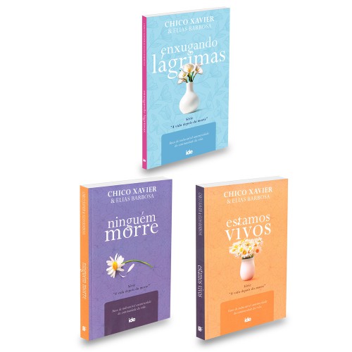 Esse kit contem 01 exemplar de cada Livro Físco e novo Ninguém Morre - Série A Vida depois da Morte - 176 páginas - 14.00 x 21.00 - Autor: Elias Barbosa / Autor: Francisco Cândido Xavier Estamos Vivos - Série A Vida depois da Morte - 144 páginas - 1 4.00 x 21.00 - Autor: Elias Barbosa / Autor: Francisco Cândido Xavier Enxugando Lágrimas - Série A Vida depois da Morte - 244 páginas - 14.00 x 21.00 - Autor: Elias Barbosa / Autor: Francisco Cândido Xavier / Ditado por: Espíritos Diversos