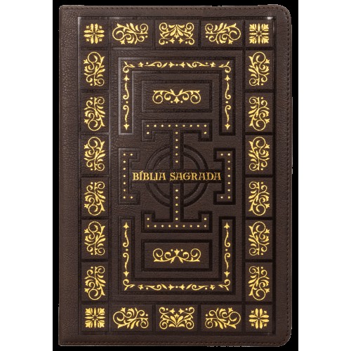 • Bíblia Sagrada Católica, Letra Grande, Molduras, Couro-soft Marrom, Leitura Perfeita